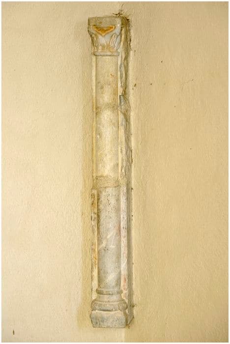 Colonne engagée surmontée d'un chapiteau. L'ensemble était autrefois peint.