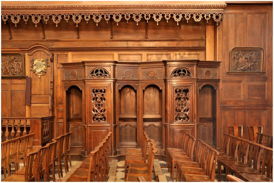 lambris de revêtement ; banc d'oeuvre ; confessionnaux