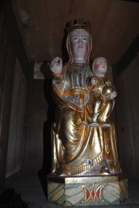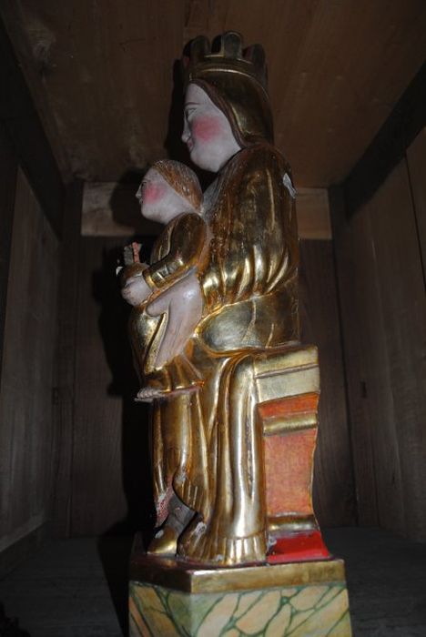 Statue du 14e siècle ayant subi une importante restauration au 19e siècle ou au 20e siècle (repeinte et dorée).