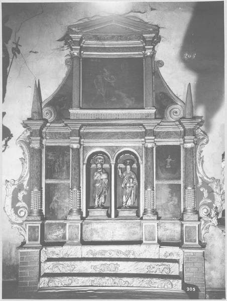 retable ; gradin d'autel ; tableau (5) ; statue (2)
