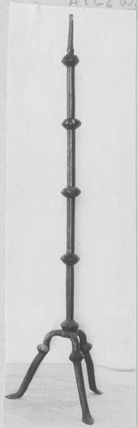 Ces chandeliers sont constitués d'une tige à cinq noeuds plantée sur trois pieds annelés.