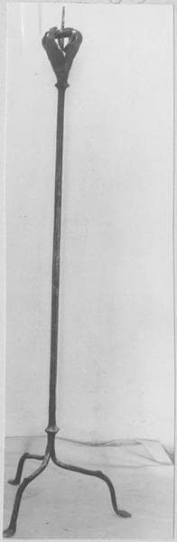 Seules présentent un caractère d'authenticité la fleur de lys et une partie de la tige. Le reste de la tige et le pied ont été reconstitué sur le modèle d'un chandelier identique qui existe dans la même église.