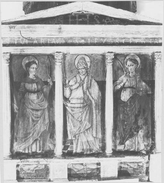POP | Plateforme ouverte du patrimoineretable, 3 tableaux, prédelle de sainte Eulalie, saint Lin et sainte Cécile : sainte Eulalie, saint Lin, sainte Cécile, saint Sébastien, saint Gaudérique