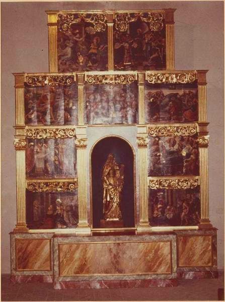 retable, 9 tableaux, prédelle de la Vierge : la Crucifixion