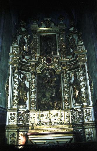 Repeint en partie. Peut-être une Oeuvre de Sunyer. Les ors sont intacts, les statues et les panneaux sculptés ont conservé leur polychromie d'origine.