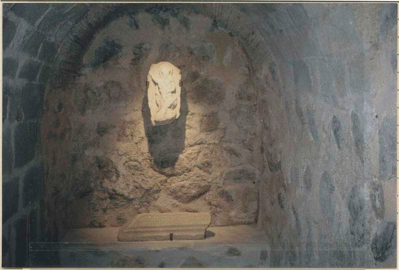 mur septentrional, encastré au-dessus des fonts baptismaux
