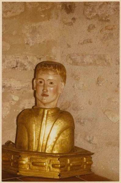 Titulaire inconnu. Cache à reliques sur le haut du crâne.
