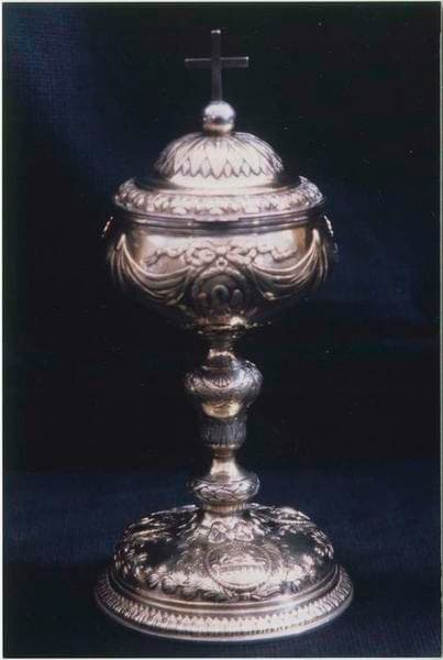 Ciboire en argent travaillé au repoussé, ciselé et partiellement doré.