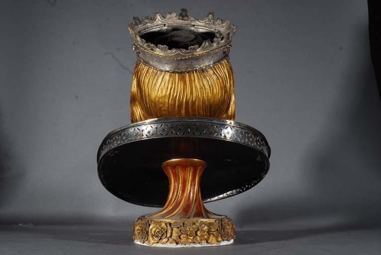 bois : taillé, peint, doré ; métal : argenté