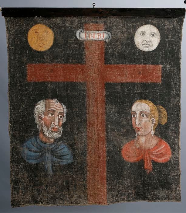 POP | Plateforme ouverte du patrimoinebannière réversible (élément du décor de la semaine sainte) : Coq de saint Pierre et Crucifixion
