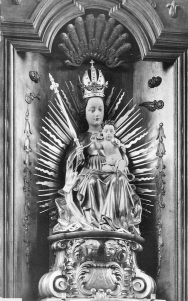POP | Plateforme ouverte du patrimoineretable du maître-autel ; statue de procession : Vierge à l'Enfant dite Notre-Dame du Mont Carmel ; tableau : Assomption