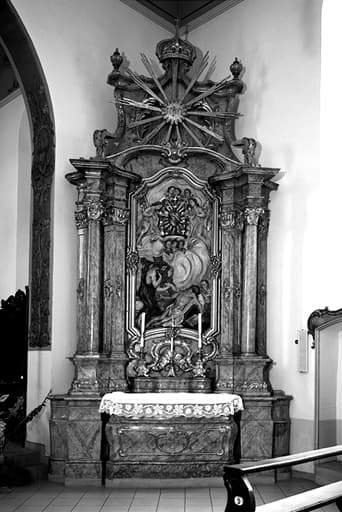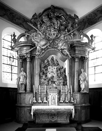 autel (2) ; retable (2) ; bas-relief (2) ; chandelier d'autel (8)