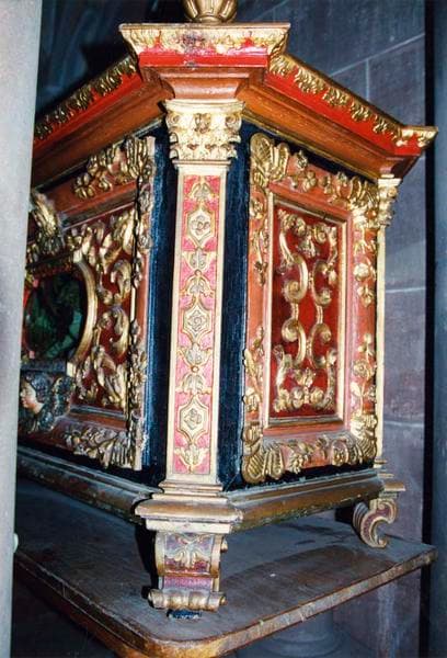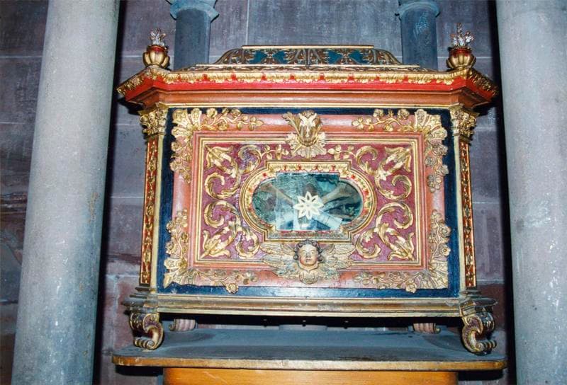 narthex, côté sud, sous l'enfeu du 13e siècle abritant la châsse-reliquaire de saint-Andelphe