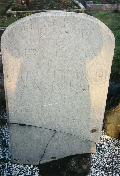Avant déchouer au cimetière, le monument funéraire de baron Louis de Sinclair (1680-1738) était encastré dans l'église d'Oberbonrn où il est à nouveau en place après avoir été restauré. Il y avait été enlevé sous la Révolution (1793), avec d'autres monuments nobiliaires et déposé dans un endroit inconnu. On pense que l'installation au cimetière remonte aux alentours de 1885, après l'enterrement du dernier Strahlenheim. Les Strahlenheim sont un famille d'origine suédoise, anoblie au milieu du 17e siècle, et qui apparaît en Alsace à partir de 1716, lorsque Henning de Strahlenheim achète la seigneurie d'Oberbronn aux Linange-Westerbourg. Après 1751, les Strahlenheim cèdent la place aux successeurs par alliance des Linange-Westerbourg : les Hohenlohe-Bartenstein, les Loewenhaupt et les Sinclair. Louis, baron de Sinclair né à Stockholm et issu d'une importante famille noble suédoise, était conseiller du roi de Pologne, Stanislas Ier. En 1711, il épouse Esther-Juliane de Linange - Westerbourg qui lui lègue à sa mort (1729) sa part du bailliage de Niederbronn et la moitié de sa part d'Oberbronn. En 1732, Sinclair épouse Madeleine Sophie, comtesse de Loewenhaupt. Il meurt à Strasbourg le 9 août 1738. Son monument funéraire a été conçu dans un goût baroque très monumental dont on rencontre peu d'exemples dans la région. La dernière Strahlenheim avait épousé un fils du fameux horloger Schwilgué ; après son décès, elle a laissé des biens à la paroisse protestante d'Oberbronn, à charge pour celle-ci d'entretenir les monuments funéraires de sa famille.