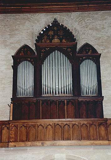 Buffet de style néo-gothique à trois plates-faces en arc brisé bordées de fines colonnes et comportant, au sommet, des couronnements en arc brisé. Panneaux du soubassement et garde-corps de la tribune ornés d'arcs en accolade trilobés. Façade en étain.