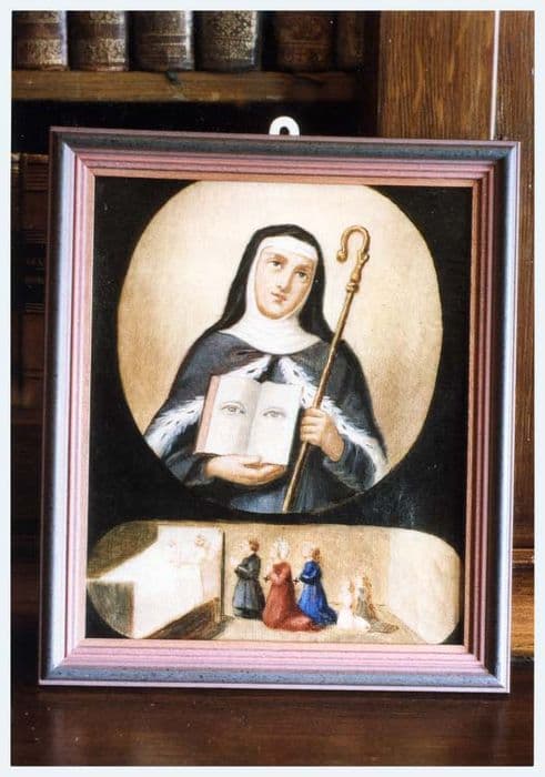 sainte Odile ; sceptre ; ex voto ; livre ; abbesse ; femme ; homme ; enfant ; lit