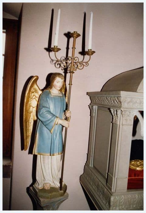 bois : taillé, peint (polychrome) ; carton ; pierre : doré