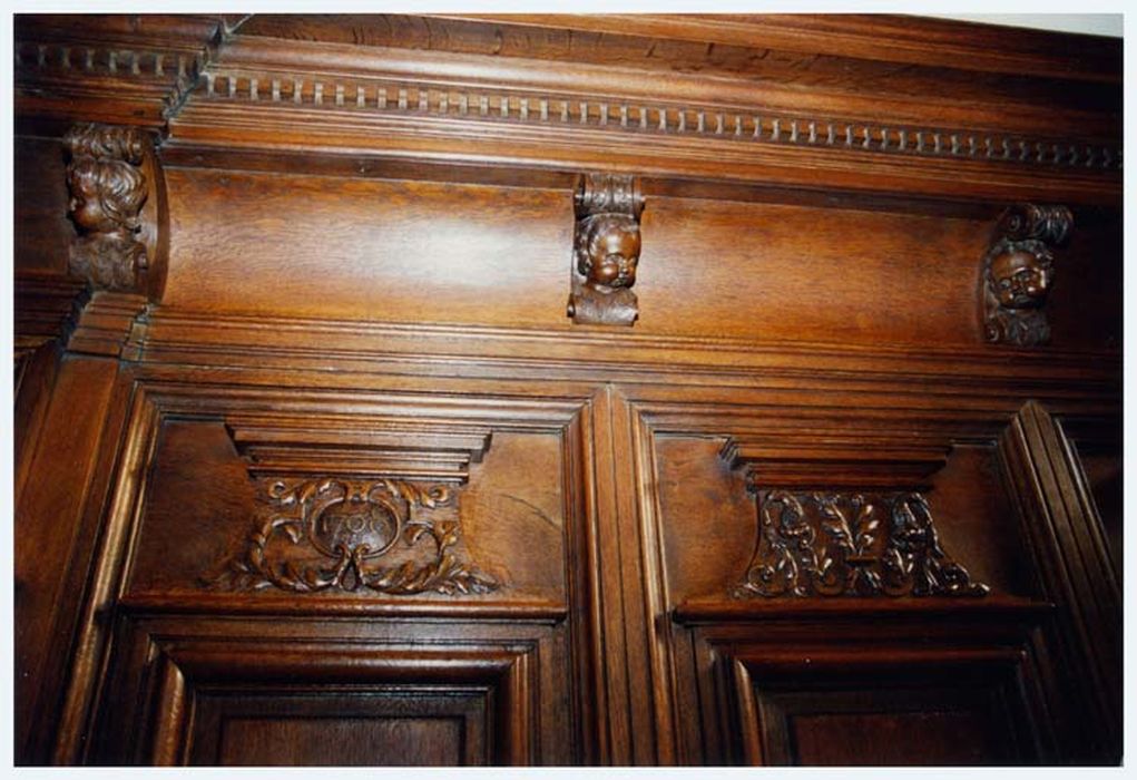 Stalles formant lambris de revêtement, avec console et tabouret d'église. Le lambris de revêtement est couronné par une corniche.