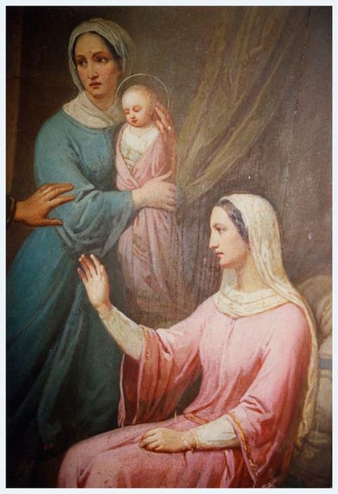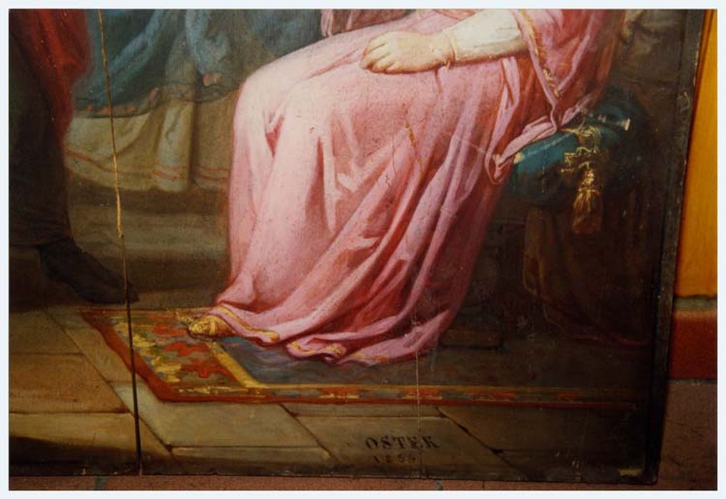 Sur le panneau n°1 (Naissance de Sainte Odile) : signature suivie de la date 1855.