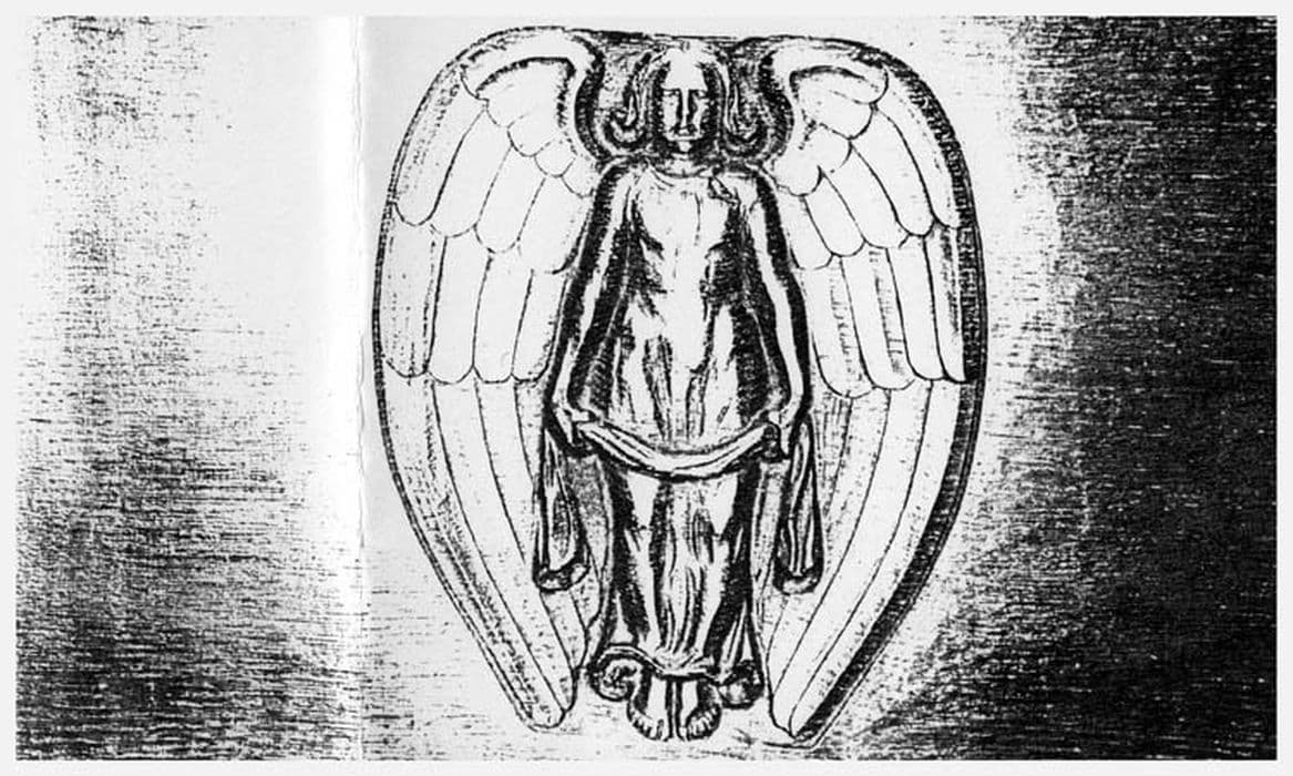 Chaque fauteuil comporte quatre pieds droits reliés par des traverses et reposant sur des pieds tournés. Le prolongement des pieds est annelé et supporte des accoudoirs plats. Le dossier est un simple rectangle de bois plein, sculpté d'un ange en son milieu.