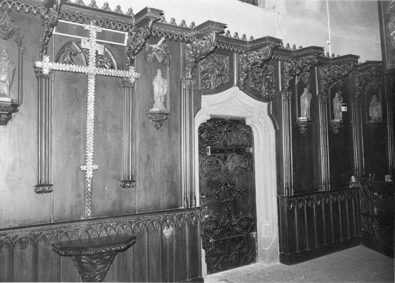 stalles, lambris de revêtement, 20 statues : sainte Richarde, sainte Odile, saint Attale, sainte Eugénie, sainte Adélaïde, sainte Hune, sainte Aurélie, saint Sigisbert, saint Dié, saint Pierre, saint Canisius (?), saint Déicole de Lure, saint Euchaire de Trèves, saint Florent, saint Fridolin, saint Dagobert, saint Materne de Milan, saint Arbogast, saint Armand, saint Léon IX