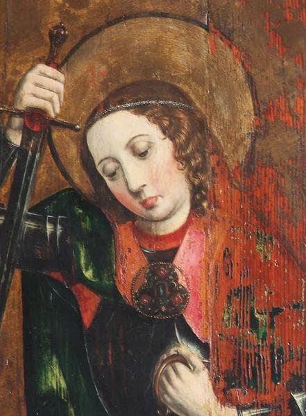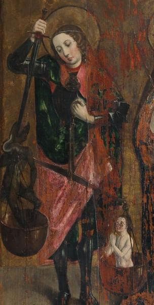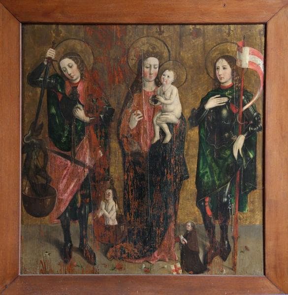 tableau : Vierge à l'Enfant avec saint Michel et saint Gangolphe, calvaire