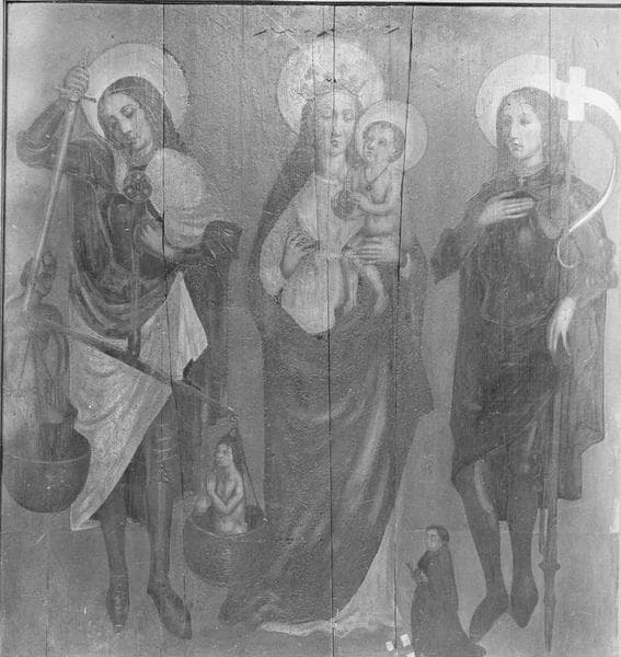 POP | Plateforme ouverte du patrimoinetableau : Vierge à l'Enfant avec saint Michel et saint Gangolphe, calvaire