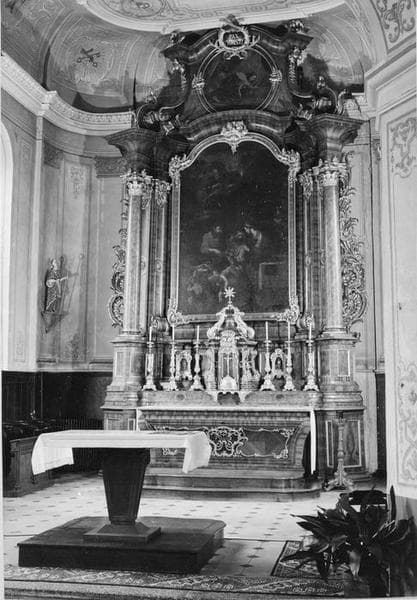 POP | Plateforme ouverte du patrimoinemaître-autel et son tabernacle, 2 autels-retables secondaires et leurs 6 tableaux : la Mort de saint Joseph, saint Louis, saint Antoine de Padoue, sainte Claire d'Assise, vision de saint François d'Assise dans la chapelle de Portioncule, Résurrection du Christ, saint Jean-Baptiste