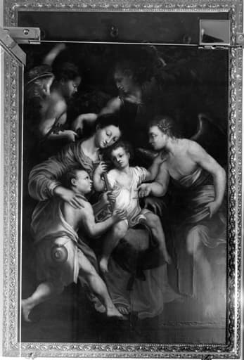 tableau : la Vierge à l'Enfant entourée de saint Jean-Baptiste et de trois anges