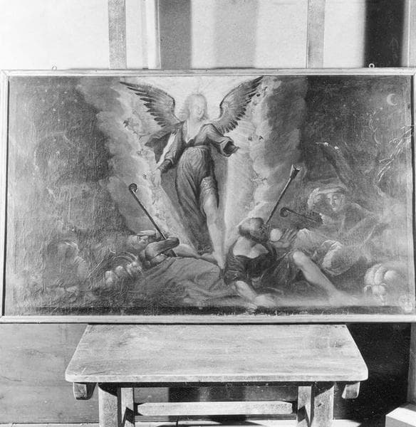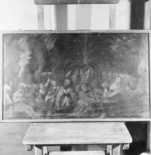 POP | Plateforme ouverte du patrimoine50 tableaux : Remise de la loi à Moïse ; David présentant la tête de Goliath et danse avec Myriam ; le Roi David jouant de la harpe ; David dansant devant l'arche de Babylone ; les Pleurs près du fleuve de Babylone ; l'Annonce aux bergers ; Annonciation ; Visitation ; Nativité ; Circoncision ; Adoration des Mages ; Présentation au Temple ; Fuite en Egypte ; Jésus et les Docteurs ; le Baptême du Christ ; la Tentation dans le désert ; Vocation de Simon Pierre ; Noces de Cana ; Prédication sur la montagne ; Jésus et la samaritaine ; Guérison du paralytique ; Jésus délivrant un possédé ; Jésus rassasiant 5000 hommes ; Guérison d'une païenne ; Jésus et la Cananéenne ; Guérison d'un sourd muet ; Transfiguration sur la montagne ; Guérison des lépreux ; Laissez venir à moi les petits enfants ; Résurrection de Lazare ; Aveugle sur le chemin de Jéricho (l') ; Entrée du Christ à Jérusalem ; Jésus châsse les marchands du temple ; Discussion avec les pharisiens ; Lavement des pieds (le) ; Cène (la) ; Repas chez Simon (le) ; Jésus au Jardin des oliviers ; Arrestation du Christ ; Jésus devant le conseil des juifs ; Flagellation ; Crucifixion ; Mise au tombeau ; Descente aux Limbes ; Trois femmes au tombeau (les) ; Incrédulité de saint Thomas ; Ascension du Christ ; Sainte Trinité (la) ; Pentecôte (la) ; Jugement dernier (le)