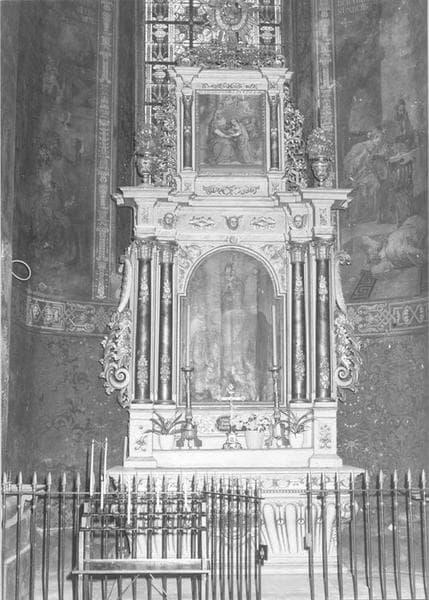 POP | Plateforme ouverte du patrimoineautel retable des âmes du purgatoire, 2 tableaux : Vierge à l'enfant tenant le scapulaire entre saint Odilon et saint Simon Stock, Education de la Vierge