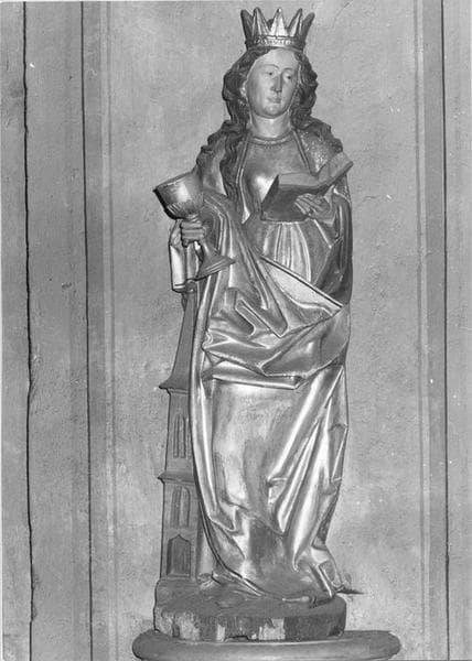 4 statues : sainte Barbe, sainte Catherine d'Alexandrie, sainte Marguerite d'Antioche, saint Benoît de Nursie (?)