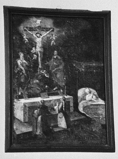POP | Plateforme ouverte du patrimoinetableau ex-voto : Personnage alité et deux agenouillés devant la scène de l'adoration de la Croix