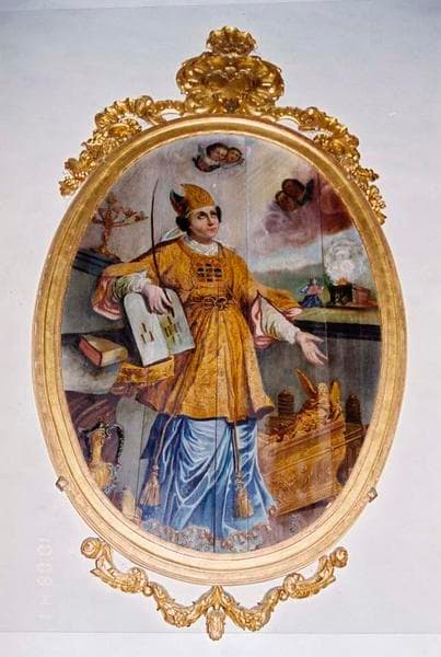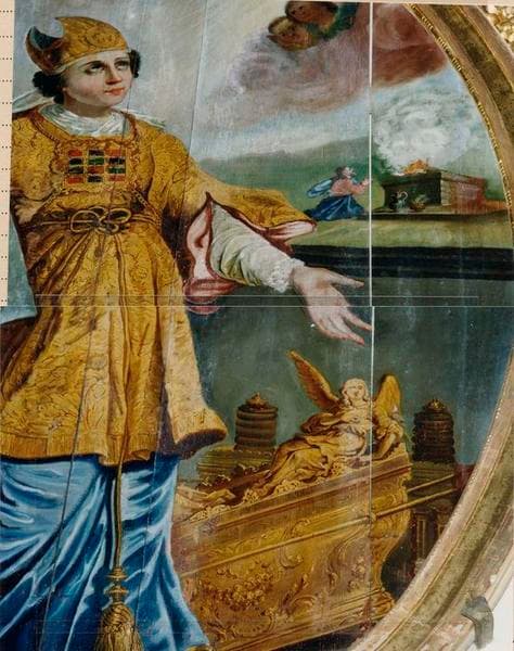 bois : taillé, doré ; bois (support) : peinture à l'huile