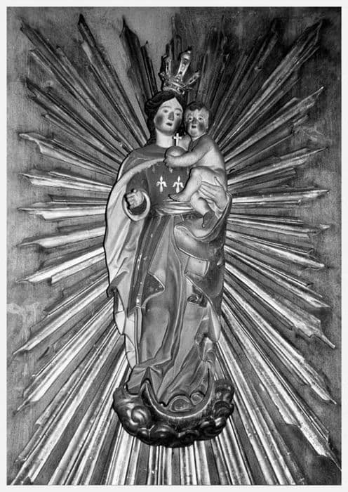 Vierge à l'Enfant ; couronne ; fleur de lys ; nuée