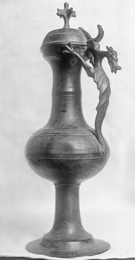 En forme de chien. Anse formée par un dragon ; pas de goulot. Bronze fondu.