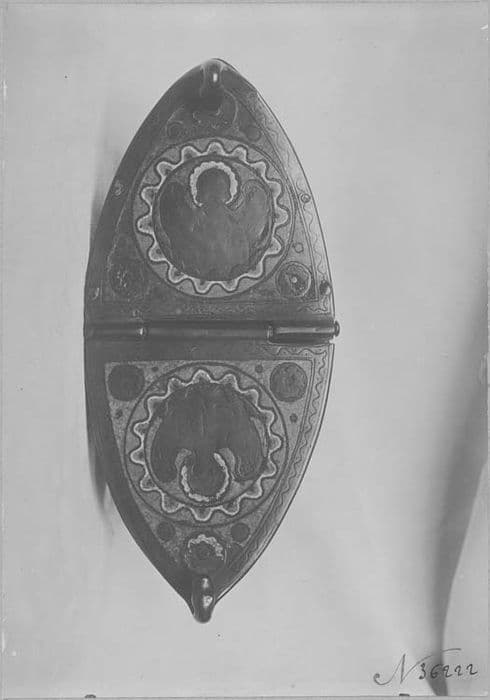 ange (en médaillon) ; ornement géométrique ; ornement végétal