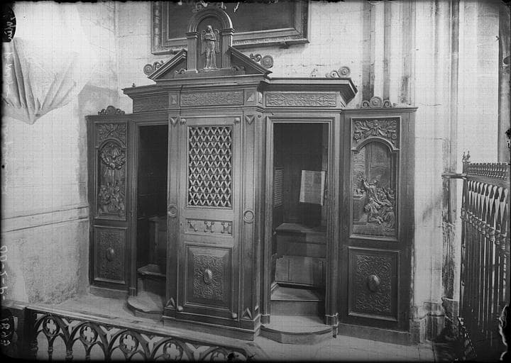collatéral sud, 3e chapelle, encastrés dans les côtés d'un confessionnal moderne