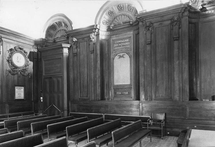 salle de la Chambre des notaires, au fond de la salle, côté jardin et côté entrée