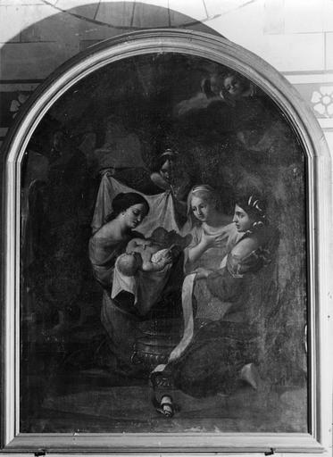 Toile restaurée par Béatrice Damour en 1995. Anciennement datée du 17e siècle.