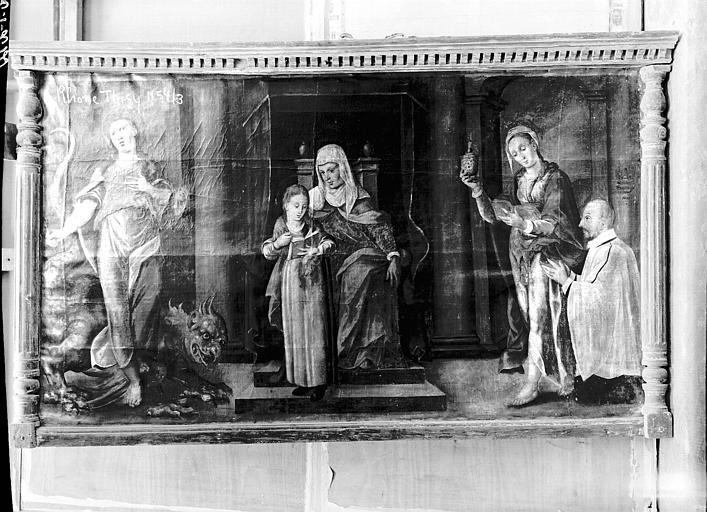 tableau : L'Education de la Vierge en présence de sainte Marthe, sainte Madeleine et un donateur