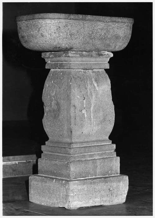 Cuve de forme rectangulaire reposant sur un socle mouluré.