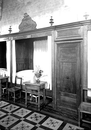 ensemble de mobilier de salle des malades : trente alcôves, trente tables et trente chaises