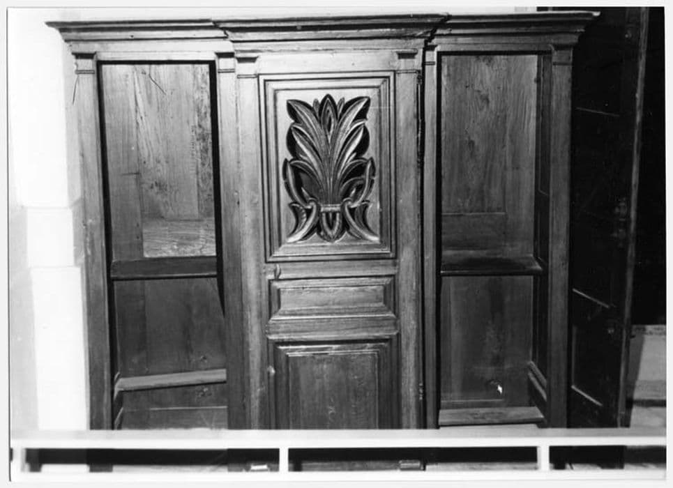 Confessionnaux à panneaux et à moulurations avec des motifs sculptés en partie centrale.