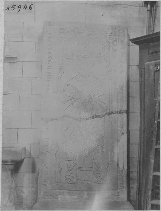 transept sud, à droite de la porte de la sacristie, relevée contre le mur