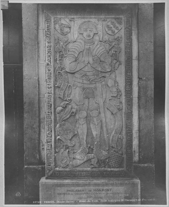 Philibert de Monrost, seigneur de Valleroy-le-Bois, est mort en 1516. Provient de l'église de Valleroy-le-Bois.