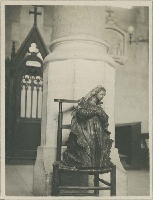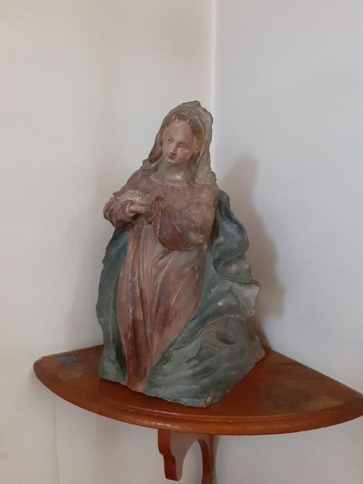 Statue de la Vierge en prière, ayant sans doute fait partie d'une salutation angélique.