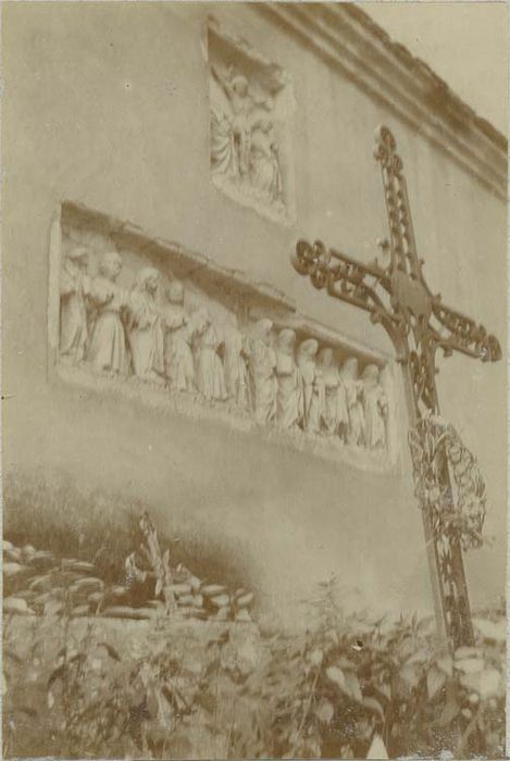 retable : le Christ en croix entre la Vierge et saint Jean et les apôtres