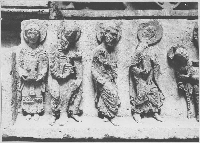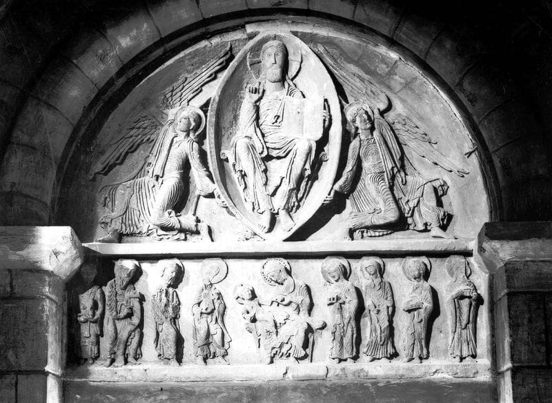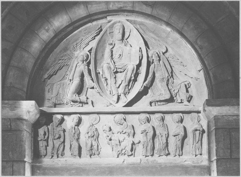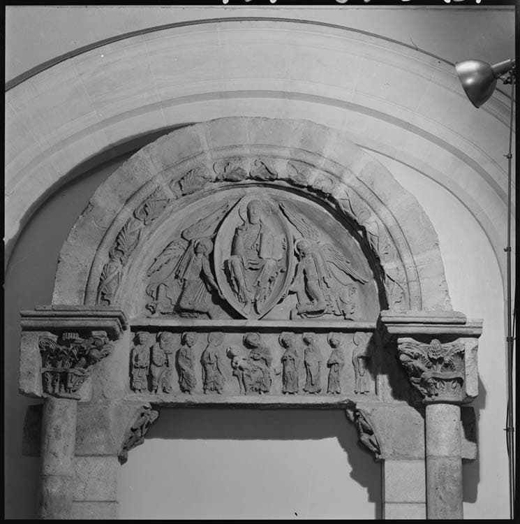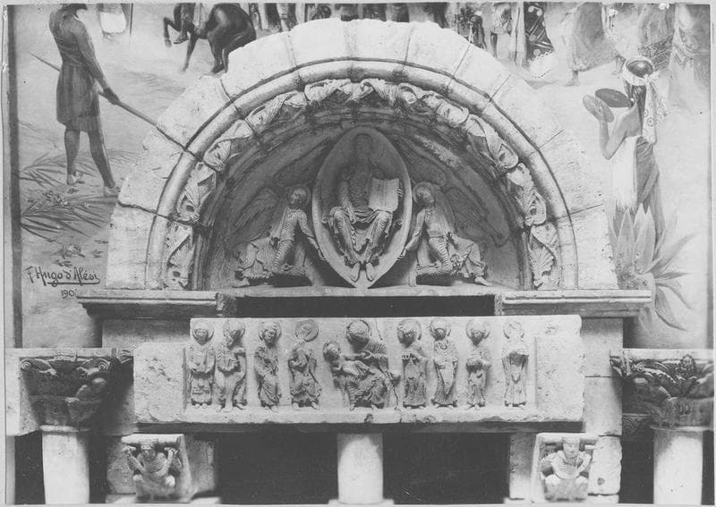Eléments d'un portail d'Anzy-le-Duc (tympan, linteau, consoles, jambages et trumeau).