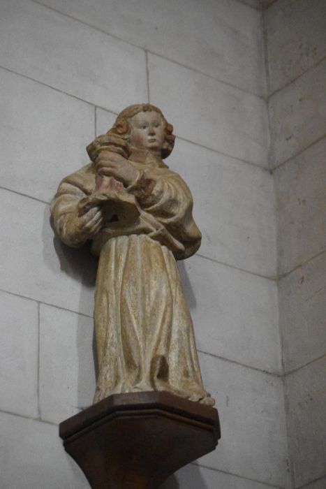 Oeuvre restaurée en 2013 par Nadia Cren et Stépahne Cren de l'Atelier Arcrestauro. Les deux anges ont perdu leurs ailes.